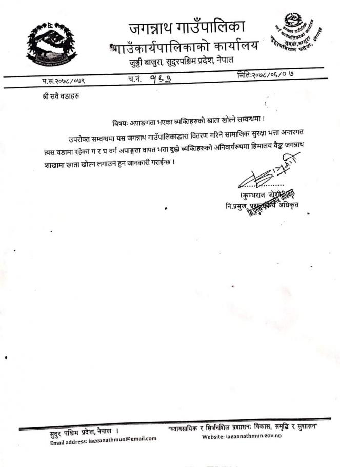 » अपाङ्गता भएका व्यक्तिहरुकाे खाता खाेल्ने सम्बन्धमा